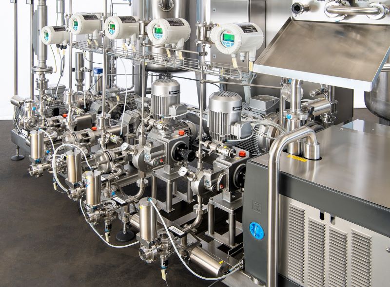 Pumps are integral to both the process of offloading the concentrates of different consistencies and the mixing process of the production line. In the morning, pumps that offload the thick juice concentrate from a delivery tanker may need to be cleaned and put back to work unloading the thin formula of a sugar free energy drink in the afternoon. The machines that blend these formulas also need to be ready to do double-duty.