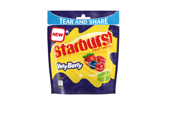 Available in Strawberry, Raspberry, Blueberry and Cranberry, Starburst Very Berry is sold in single (45g), hanging bag (150g) and sharing pouch (192g) formats, including price marked pack options.