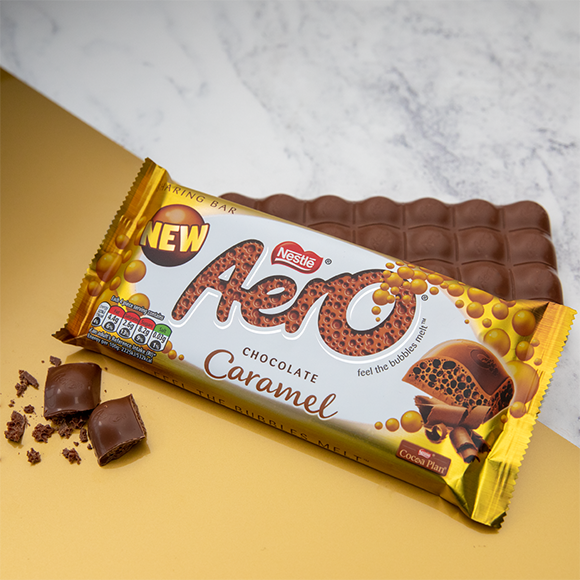 Aero Caramel is being made at Nesté’s York factory, which also produces KitKat, Milkybar and Polo, as well as milk and peppermint Aero and Aero Bubbles. The caramel sharing bar will go on sale in the next few weeks in Asda, Co-op, Morrisons and Tesco, as well as at wholesalers and on the convenience channel, with an RRP of £1.00.