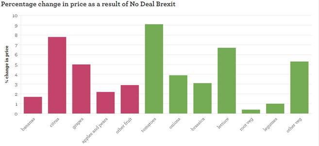 New analysis from SHEFS finds that a No Deal Brexit would further compound the challenge of increasing veg consumption. 68% of our total supply of fruit and veg in the UK is imported, and a no deal scenario would mean imports from the EU (as well as non-EU countries where trade deals have been negotiated through the EU) would automatically be subject to the new UK ‘most favoured nation’ tariffs.