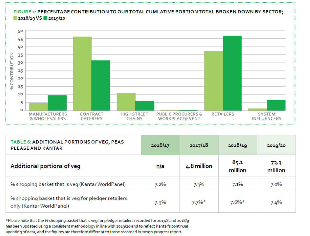 Even with Covid-19 causing disruption across the food sector, the Food Foundation reports that the Peas Please initiative continued to deliver on its mission, with 72.1 million additional portions of veg being sold or served this year. This demonstrates remarkable progress in the right direction, despite the rate of increase slowing slightly as a result of the pandemic (approximately 13 million fewer additional portions were reported compared to last year.)