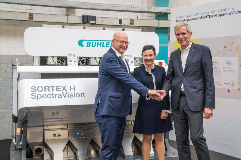 Patrick Maselis, MD, Carmen Schlatter Broger, head of digital technologies, Bühler and Calvin Grieder, Bühler chairman Image: Bühler