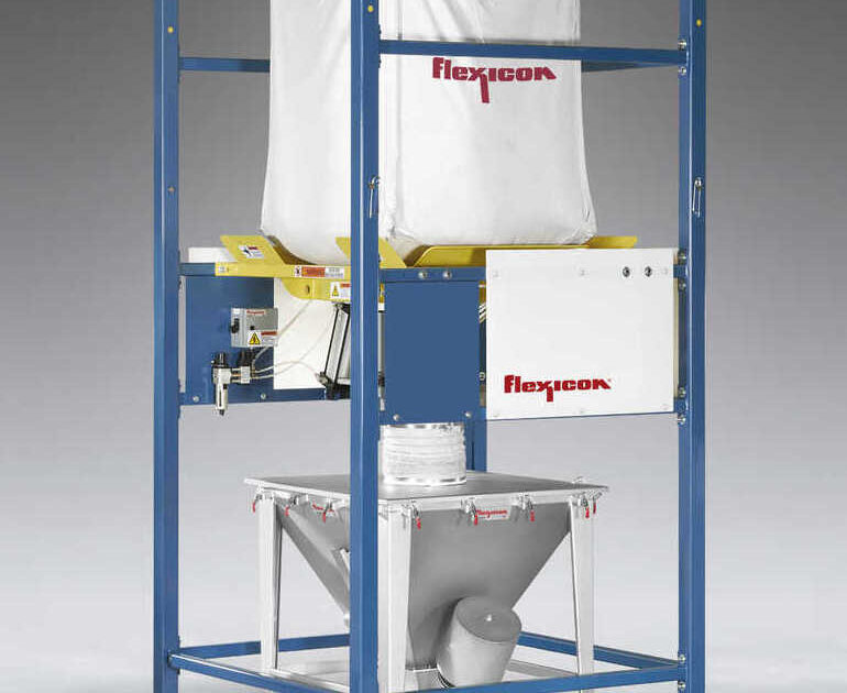 A new Flexicon BFF Series Bulk Bag Discharger contains dust when connecting bag spouts and feeding material into vacuum conveying lines, preventing contamination of the product and plant environment.