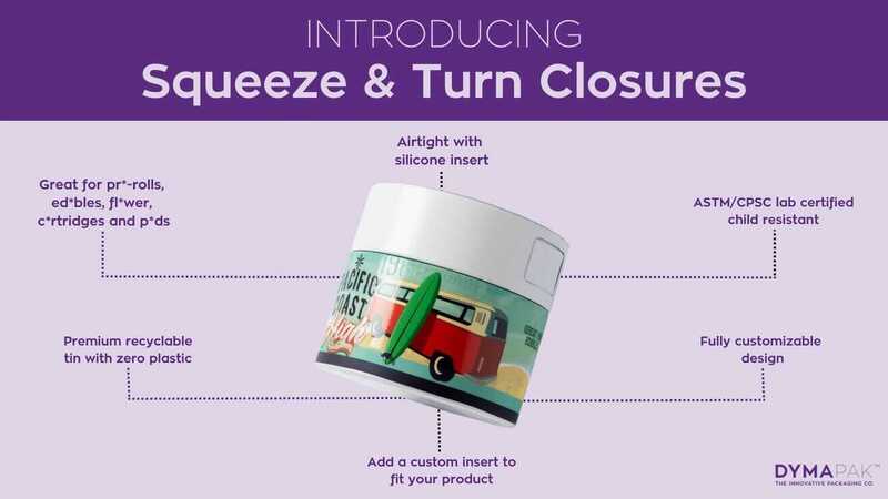 Ross Kirsh, Dymapak CEO said: “The Squeeze and Turn Tin prioritizes high-quality, easy-to-use packaging solutions that reduce the sizable and growing waste problem we see from plastic closures. We are thrilled to share our new proprietary tin with companies looking for safe, simple and sustainable solutions.”