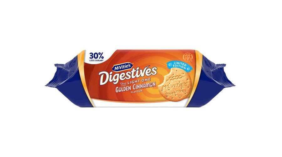 Limited-edition McVitie’s Digestives The Light One Golden Cinnamon flavour are buttery baked McVitie’s Digestives with the light spice of cinnamon to add depth and warmth as well as natural sweetness.